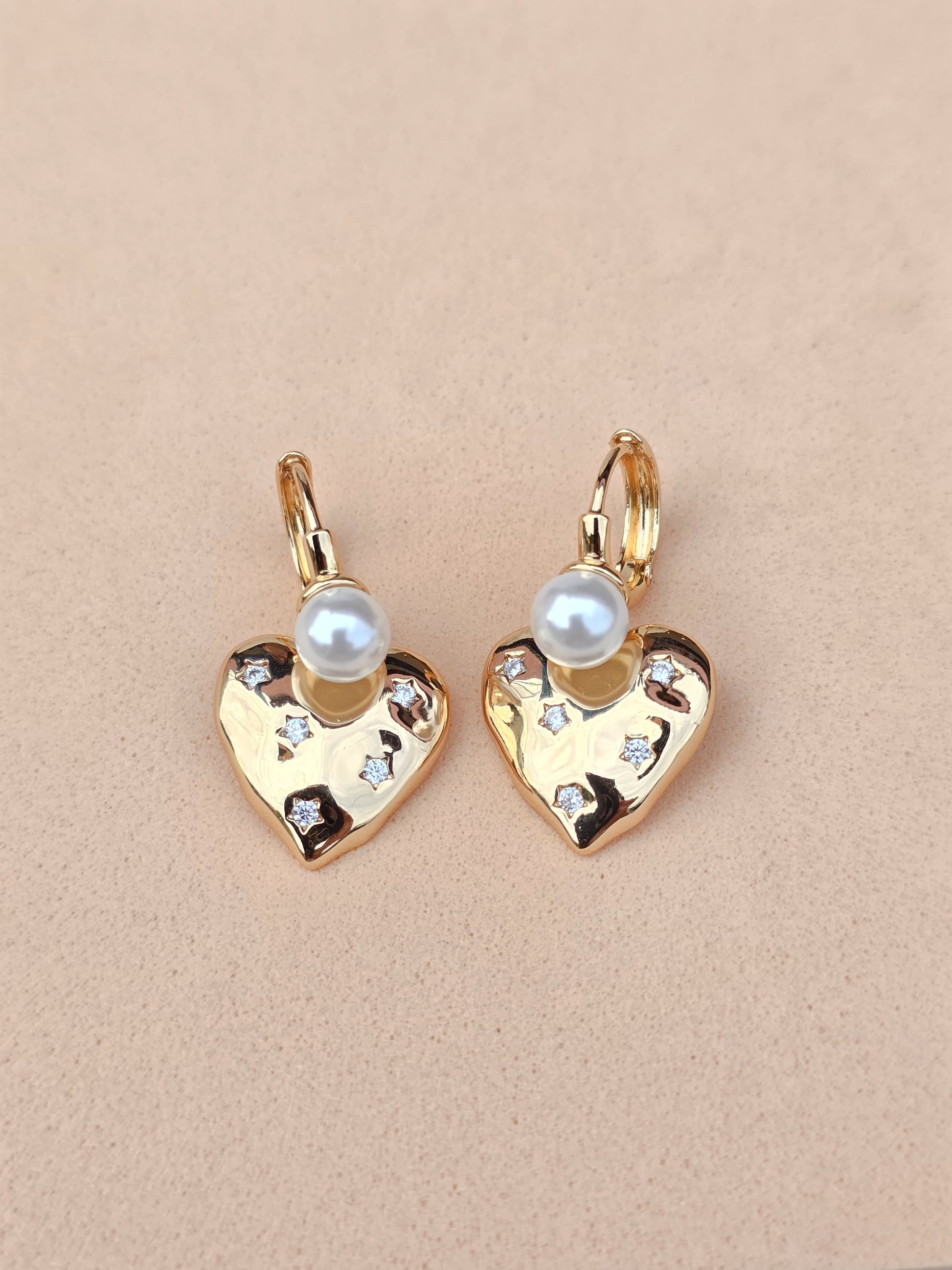 Los Aretes Bella combinan la elegancia clásica de la perla con el encanto moderno de un corazón colgante adornado con incrustaciones de circonitas brillantes. Fabricados en aleación de cobre premium, con baño en oro rosa 18K y capa protectora duradera, ofrecen un acabado luminoso y resistente al paso del tiempo.