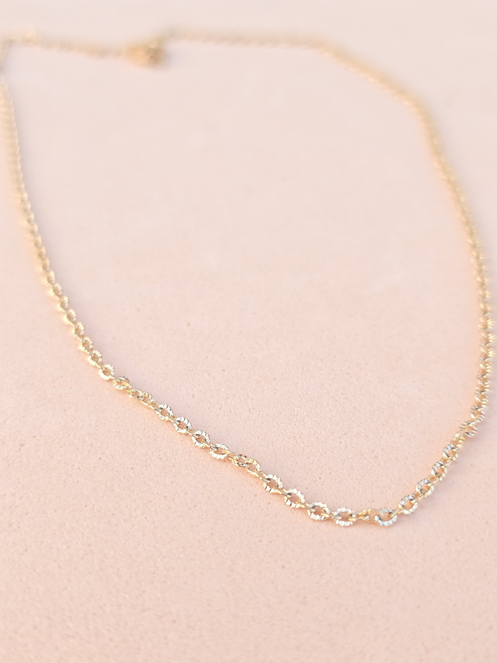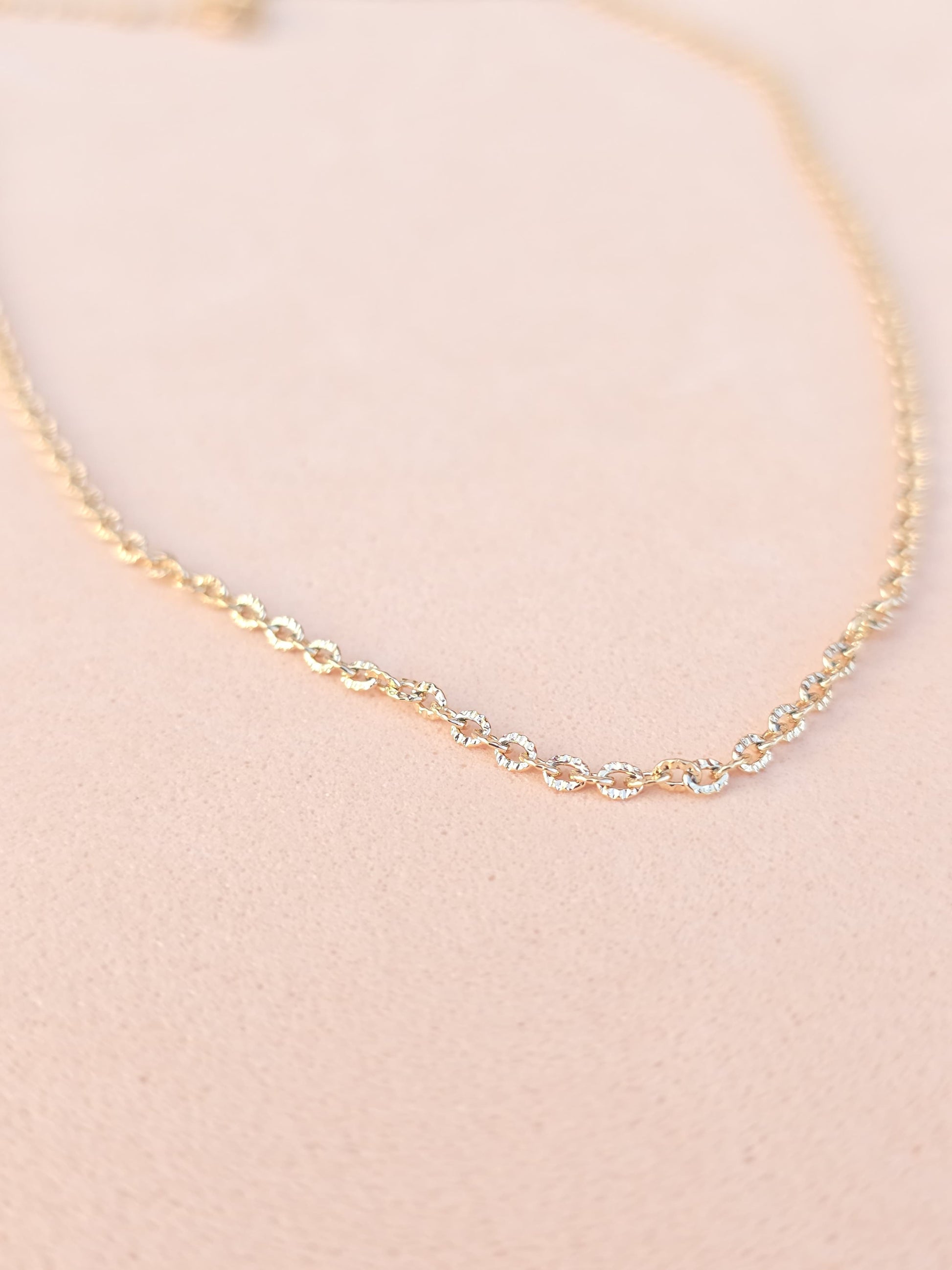 La Cadena Amira Round de 45 cm combina elegancia y sencillez en un diseño de eslabones redondeados que aportan un toque clásico y atemporal. Elaborada en aleación de cobre con baño en oro rosa 18K, ofrece un brillo duradero y una textura suave al tacto.