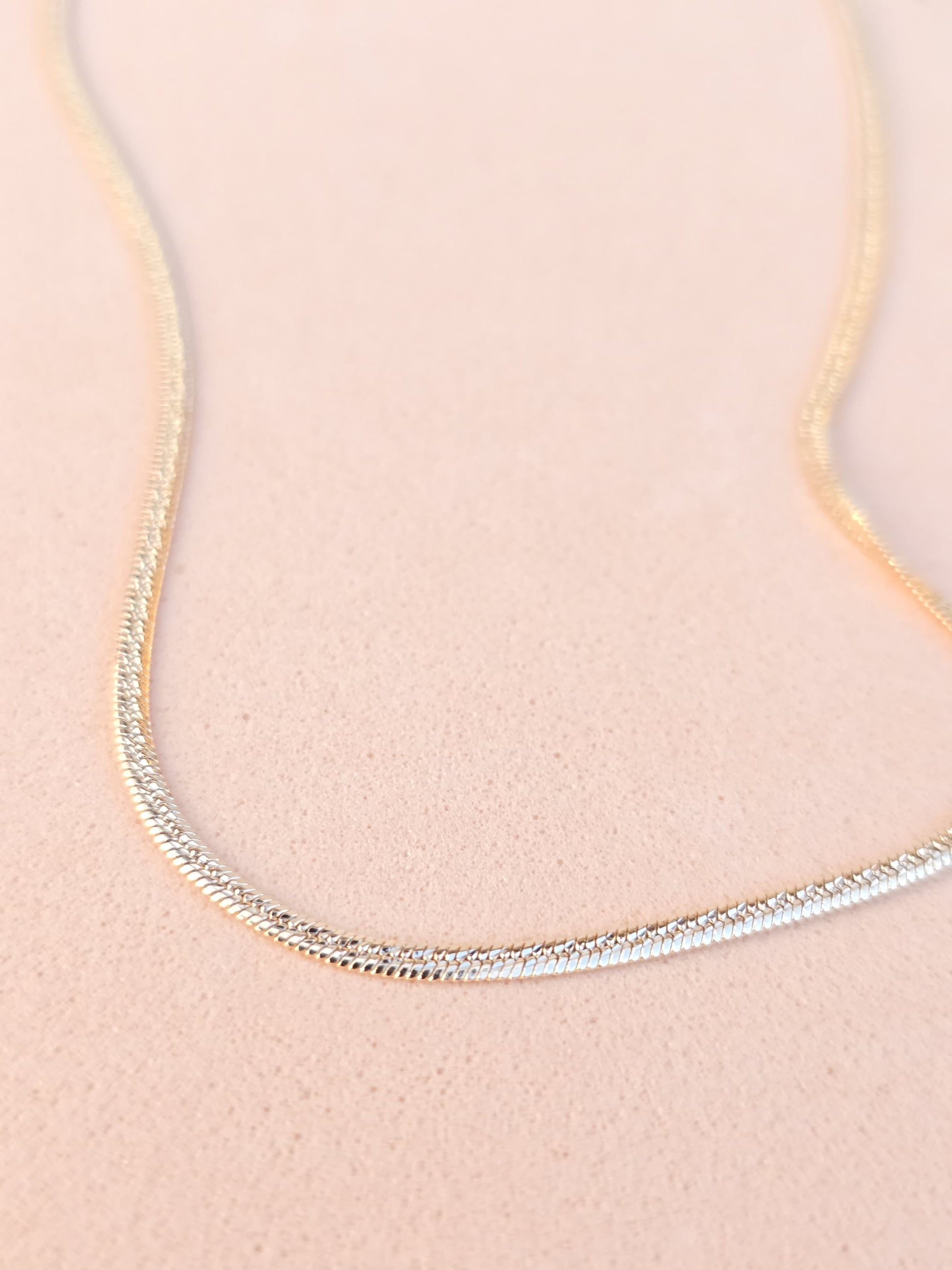 La Cadena Delya Flat de 50 cm ofrece un estilo refinado y versátil con su diseño serpiente plano, ideal para quienes buscan una pieza que combine elegancia y durabilidad. Fabricada en aleación de cobre con baño en oro rosa 18K, su acabado brillante y su capa protectora antihumedad garantizan una larga vida y un aspecto siempre impecable.