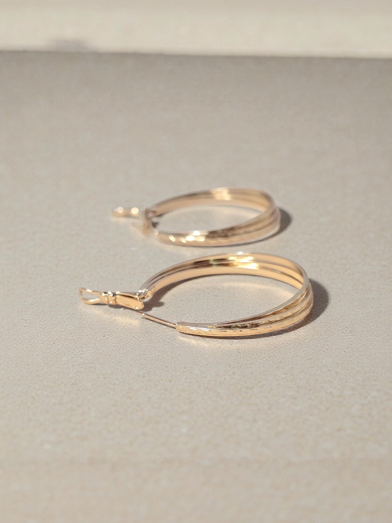 Candonga maxi triple, elaborada en covergold hipoalergénico chapado en oro rosa 18K y capa protectora antihumedad. Su diseño audaz y moderno combina elegancia y versatilidad, ideal para destacar y complementar cualquier look diario o especial.