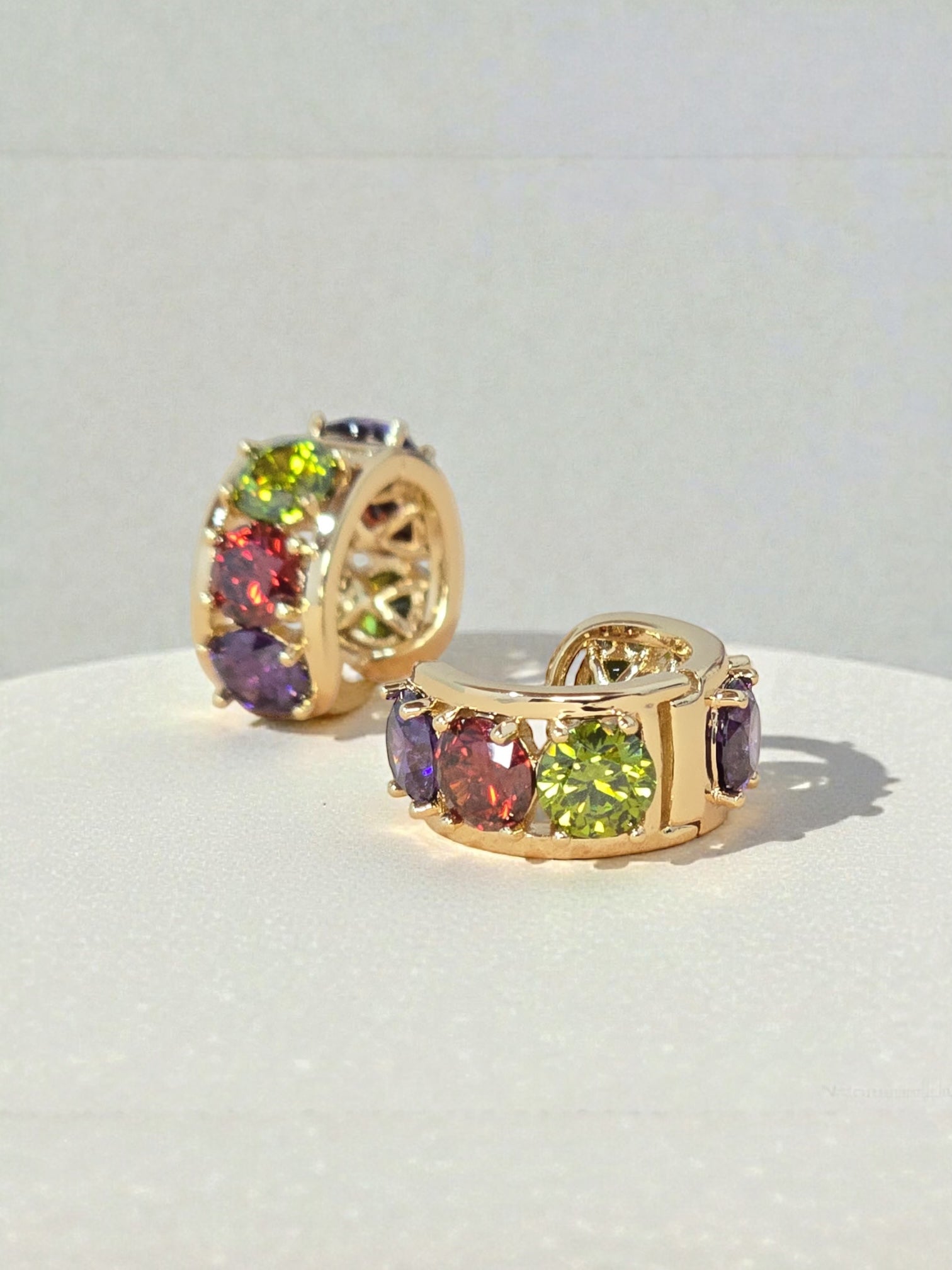 Candonga con circones de brillo delicado que enmarcan el rostro con elegancia, elaborada en covergold hipoalergénico chapado en oro rosa 18K y capa protectora antihumedad. Un diseño sofisticado y versátil que acompaña tu look con luz y estilo sutil.