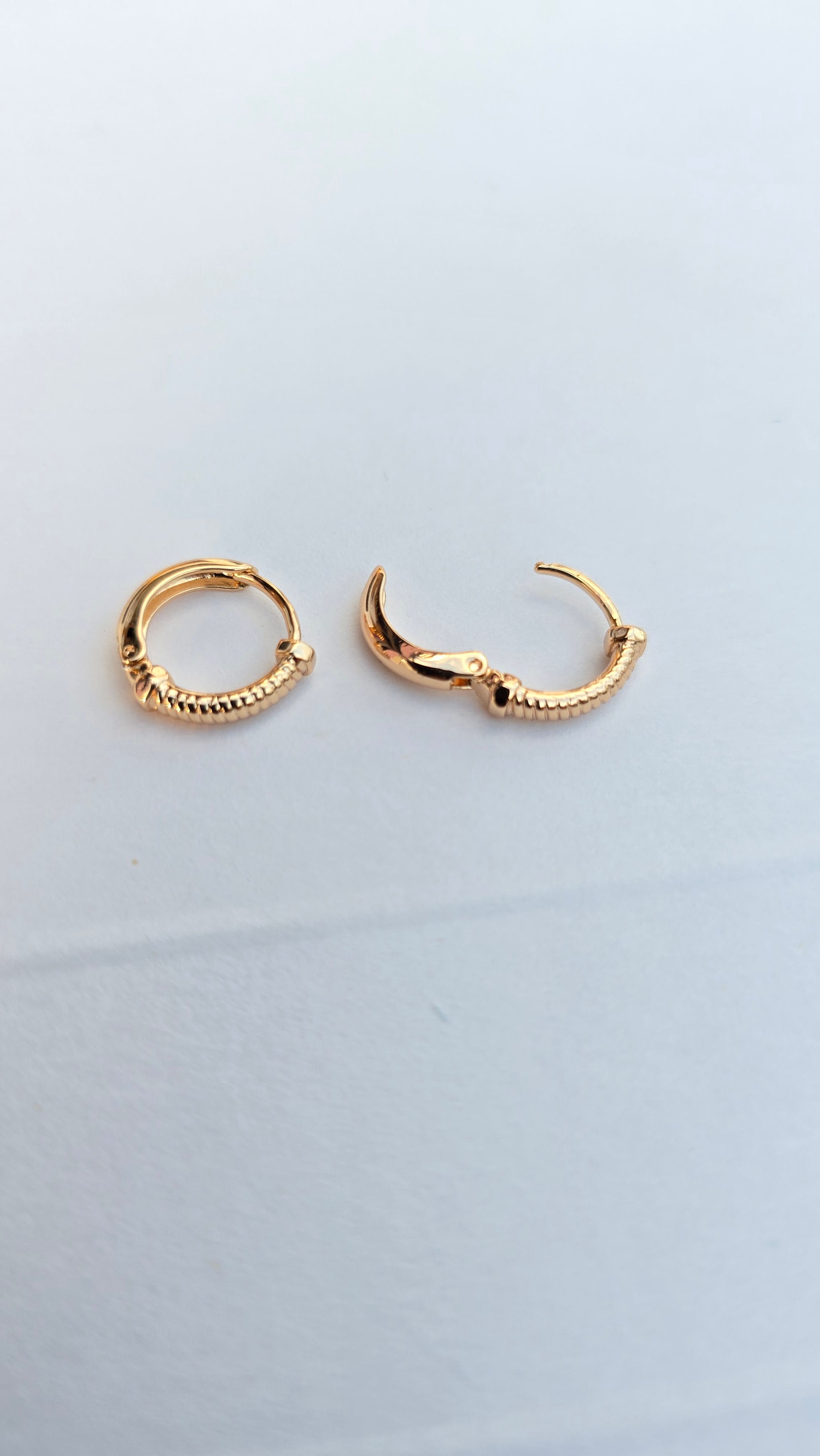 Las Candongas Elara combinan delicadeza y sofisticación en un diseño minimalista, elaboradas en aleación de cobre premium con baño en oro 18K y capa protectora que garantiza su brillo y resistencia.