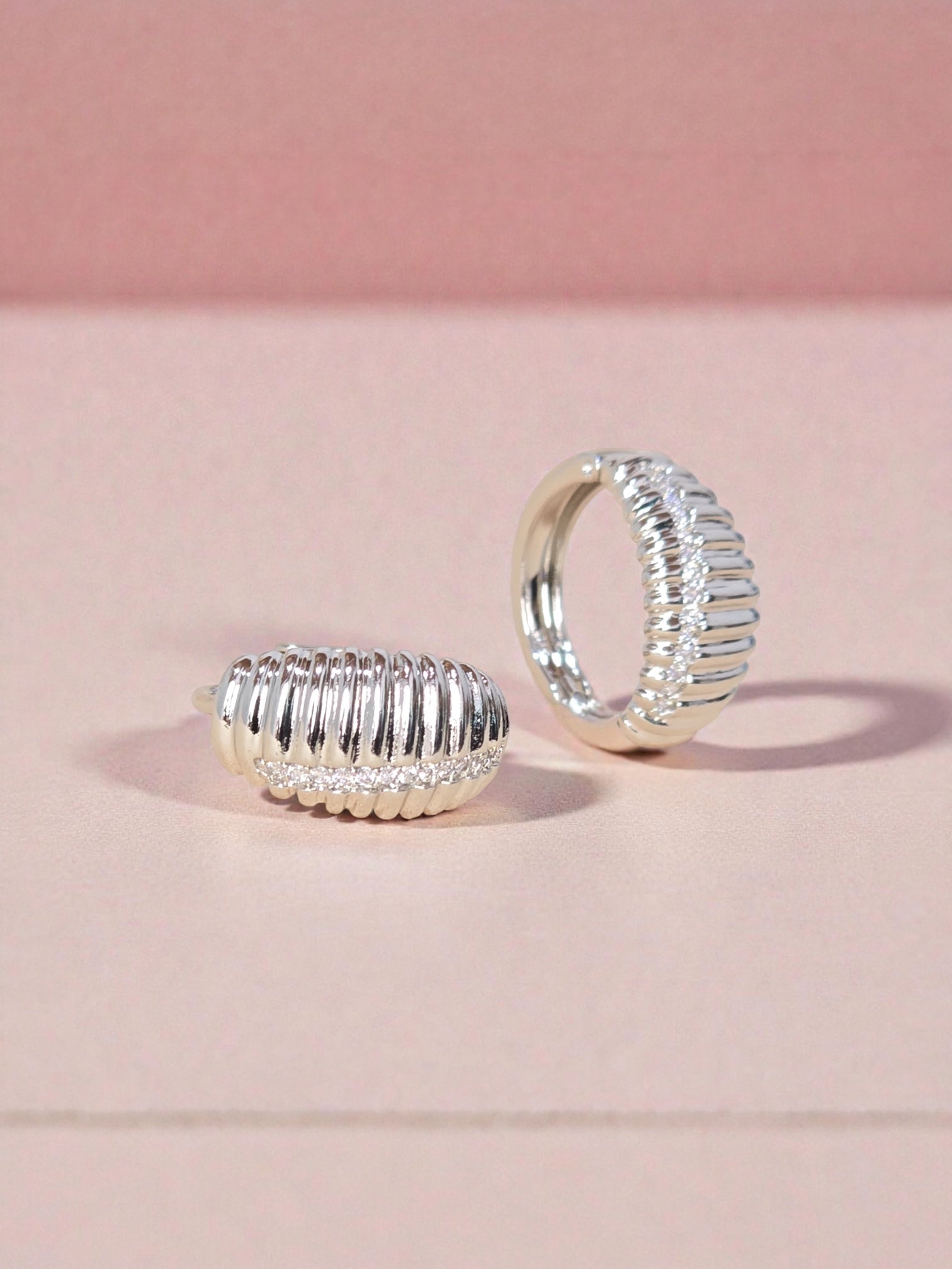 Candonga plateada con elegante con circones brillantes, elaborada en covergold hipoalergénico con capa 18K y protección antihumedad. Su textura trenzada y brillo sutil aportan un toque moderno y sofisticado a cualquier look diario o especial.