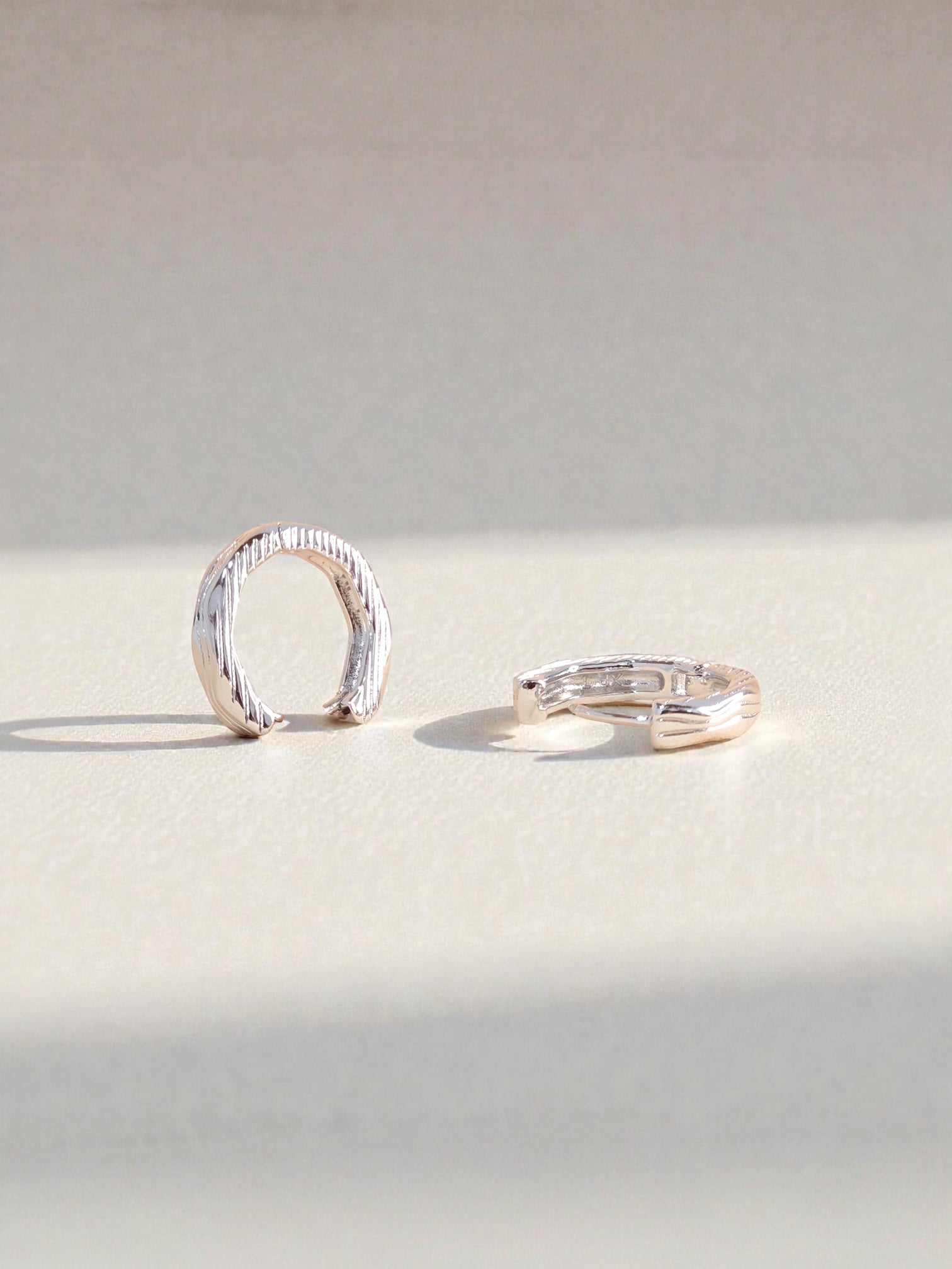 Candonga plateada con elegante textura, elaborada en covergold hipoalergénico con capa 18K y protección antihumedad. Su diseño sofisticado y moderno aporta un toque chic y versátil, ideal para complementar cualquier look diario o especial.