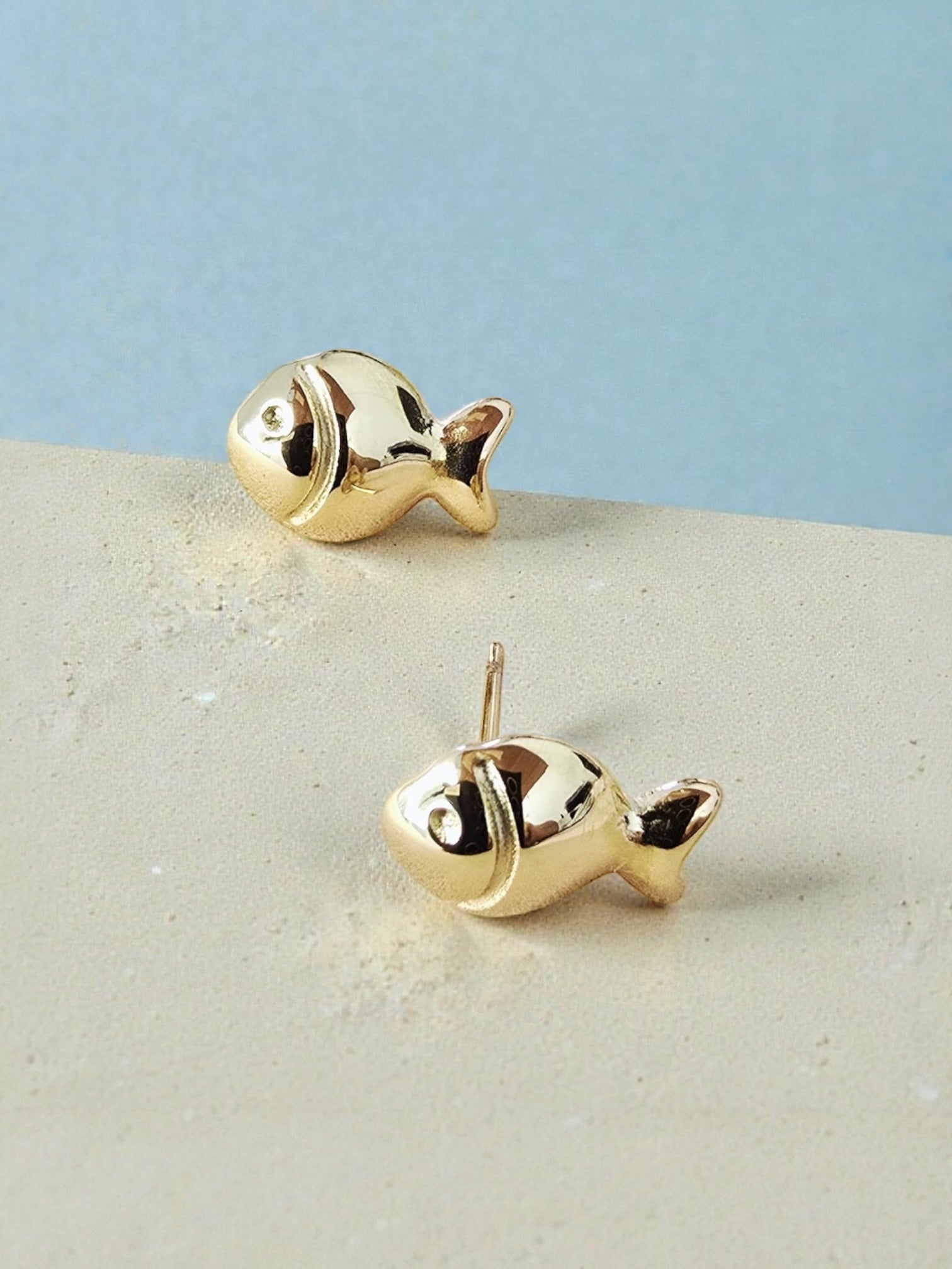Arete topo con diseño de pez, elaborado en covergold hipoalergénico con baño en oro 18K y capa protectora antihumedad. Un diseño divertido y delicado que aporta un toque único y coqueto a tu look diario o especial.